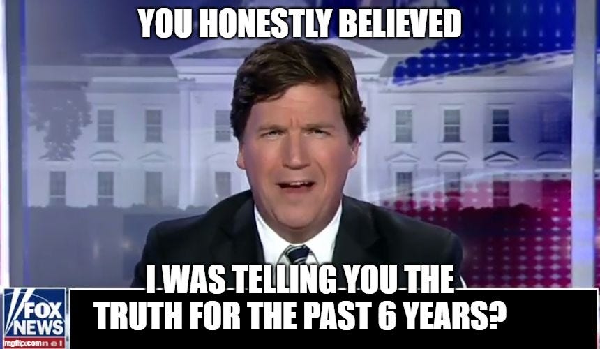 Tucker Carlson has been at it for almost four years. For all practical purposes, a media nobody who was, under FOX, a media somebody. Today he’s just another podcaster and propagandist among thousands who pawns for America’s enemies. In his case, Russia and Iran.